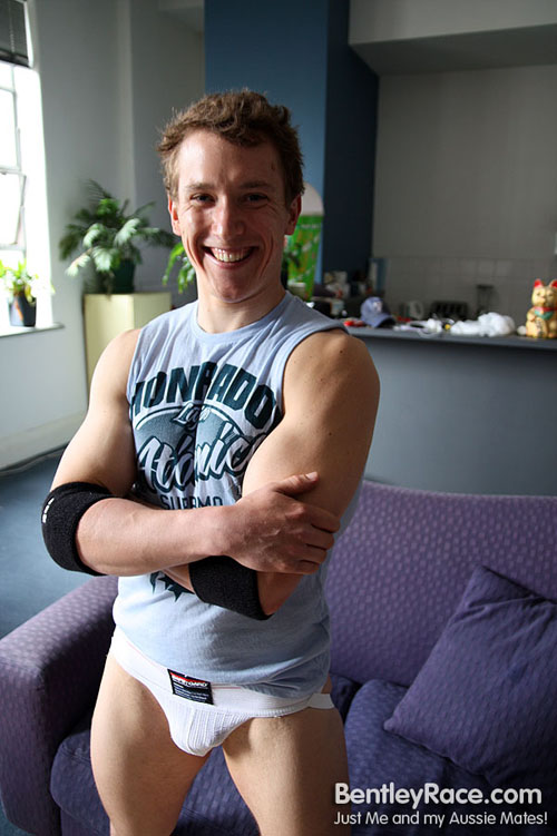 I just finished posting the video I made with my mate Brad. Brad is becoming a big porn star here in Australia after appearing on BentleyRace a few times now as well as his appearances on the straight site GirlsOutWest. Apart from being pretty dam sexy, Brad is just a lot of fun to hang out and shoot with. In this scene he’s chatting with me while jacking off over some porno on my couch.