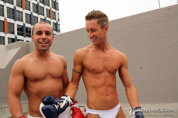 Kaleb and Marco gave a hot show to the city of Melbourne from my rooftop last weekend as the boys duked it out and then stripped off!   Kaleb was winning for much of the boxing, but he let Marco win after seeing his huge cock flop out of his jockstrap.   We had so much fun shooting the fight on the roof and then later the boys fucked like crazy!   Marco’s excitement was obvious from the huge load he pumped out after fucking Kaleb’s tight little butt hole.